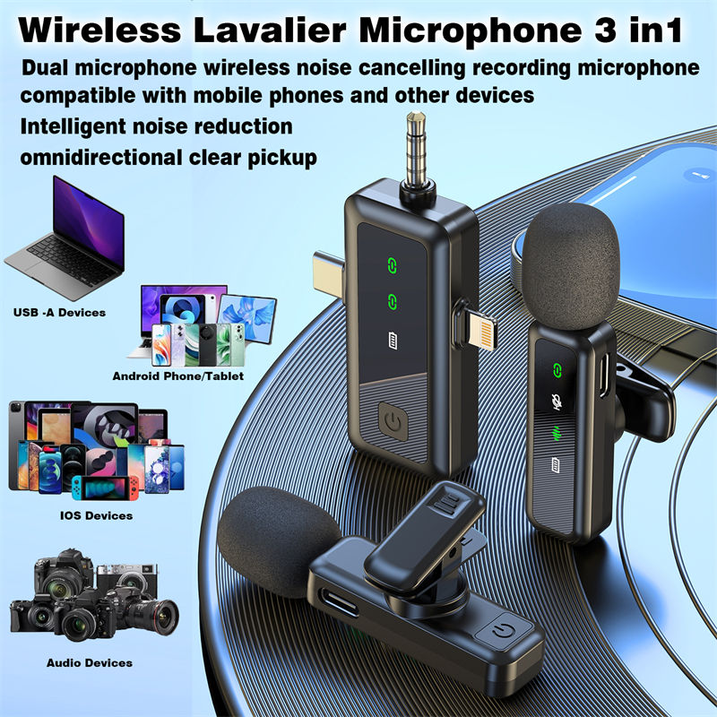 [Noise Reduction small Microphone] With the upgraded stable omni-reducing AI chip, the microphone for iphone can reduce noise and pick up your voice, which intelligently reduces noise and recognizes your voice in 360°noisy environments, effectively reduces noise interference, and provides you with clear sound.[mic Long Working Time and transmission] This professional wireless lavalier microphone uses 2.4GHz transmission technology to provide stable audio signals within a range of up to 65 feet. A single lavalier microphone can work 6 hours when fully charged (1 hour). It means you can use two microphones for up to 12 hours. You also can use the wireless microphone for Android iphone when charging your device—no need to worry about battery life.wireless mic[small microphone Wide Compatibility]upgraded 3-in-1 universal receiver is compatible with a range of devices, Mini microphone for iphone adopts a unique lapel clip detachable design, the microphone can be switched left and right to wear position, lapel microphones are compatible with iPhone15/ iPhone16 series, android phones, and also compatible with iPad air 5, laptops, microphone can be used for podcasting, video blogging, teaching interviews, online meetings, live streaming, as well as social media platforms such as YouTube and TikTok,lavalier microphone wireless,clip on microphone wireless,tiny microphone,clip on microphone,wireless microphone for iphone[Warmly tips wireless mic] 2*Wireless Lavalier Microphone,1*3 in 1Mic Receiver,1* USB C Charging Cable, 1* Microphone User Manual,1*USB-A Adaptor,2*Windproof Hairball,4*Sponge Head, if you have any questions about our lapel microphone, Please feel free to contact us